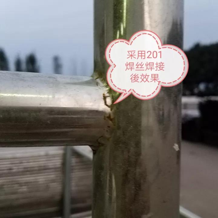 近期,天禾裕所的不銹鋼復合管護欄,采用氬弧焊接,并且所有焊接口嚴格加工流程破口,拼裝,焊接,打磨,拋光等。全部人員技術水平國內,并且公司破口全部采用激光精準破口,沒有誤差,保證焊接更加圓滑平穩美觀,并且沒有漏點。現在市場長期由于價格便宜大多采用201不銹鋼焊絲,由于高溫融化及容易造成焊接處生銹,并且給后續交驗和維護帶來很多問題,公司現在不管哪種材質復合管均采用304不銹鋼焊絲,雖然價格每噸比201焊絲高出6000多元,但是能保證其焊口不容易生銹,減少很多工程費用和后患,看似小事實則大事,可能由于采用201不銹鋼焊絲造成焊口大面積生銹,處理難度大,維護成本高,并且容易處理后反復,對工程質量影響很大,再加上焊接水平差異很可能交工驗收不通過,所以不能因小失大,提升質量層次,減少焊接隱患,現在對現場幾組兩種不同焊絲焊接效果做一比較,更加明白清楚,一定在質量上不會省小錢給客戶造成大麻煩!